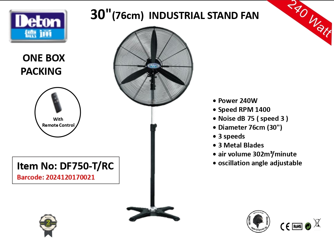 DETON Industrial Stand Powerfull Fan 30″ DF750-T/RC
